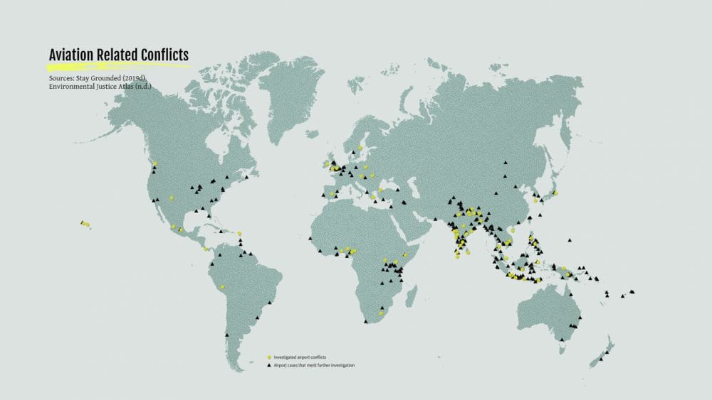 Socio-environmental conflicts are a collective manifestation of discontent, when people organize themselves against situations regarding not only unequal distribution of environmental benefits but also unequal distribution of the environmental damages. More than 300 such conflicts related to the expansion or creation of new airports or aerotropolis were mapped in research with 67 in-dept case studies in collaboration between Environmental Justice Atlas and Stay Grounded. Our webinar gave an overview on the research and the diversity and patterns of airport conflicts, as well as and three specific cases from Sout-East-Asia. It also touched overall lessons learned from the cross-case analysis and how to contribute to the mapping process.